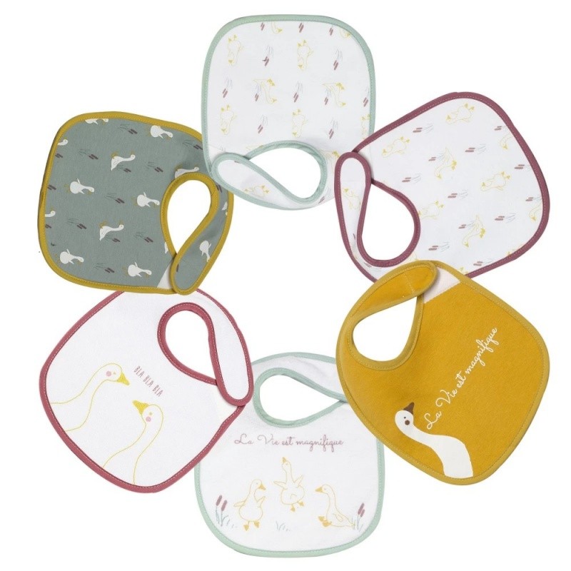 Cet assortis de bavoirs naissance 18x21 cm, en éponge ultra douce et absorbante, sera idéal de 0 à 6 mois environ.