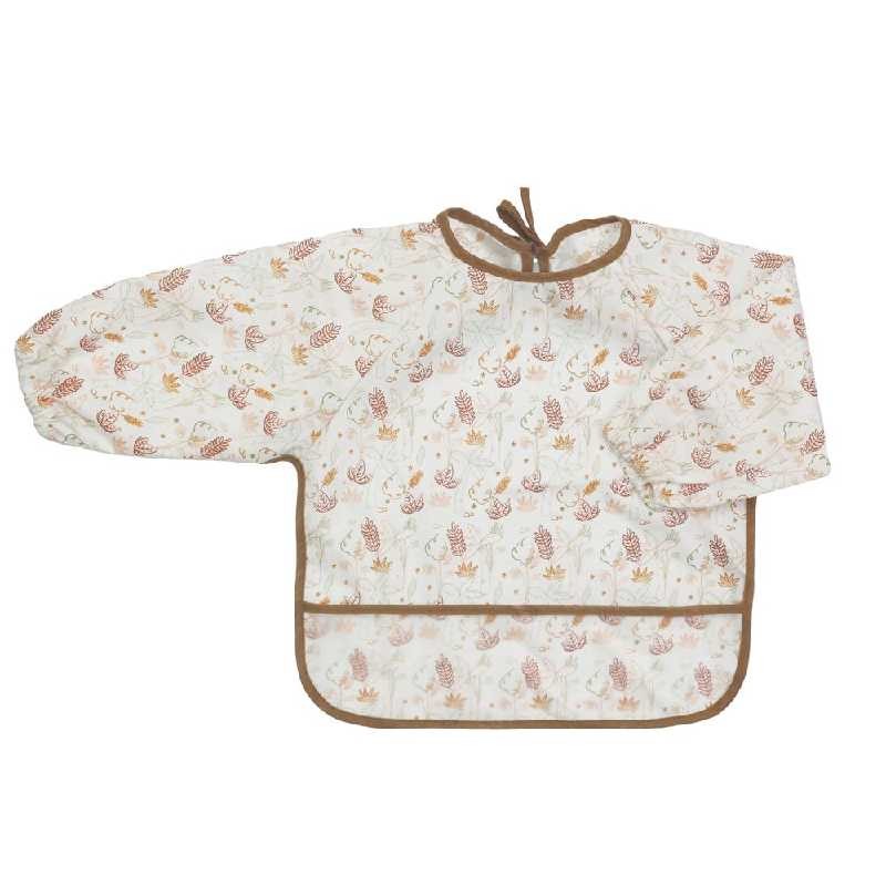 Bavoir tablier très pratique pour le début de la diversification alimentaire. Une pochette est présente au bas du bavoir pour rattraper les aliments perdus par bébé. Les manches élastiqués sur le bout permettrons de garder les vêtements de bébé au sec.