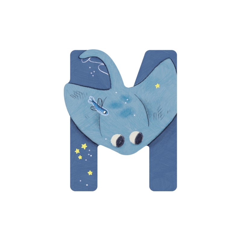 LETTRE BOIS M BLEU L'ALPHABET