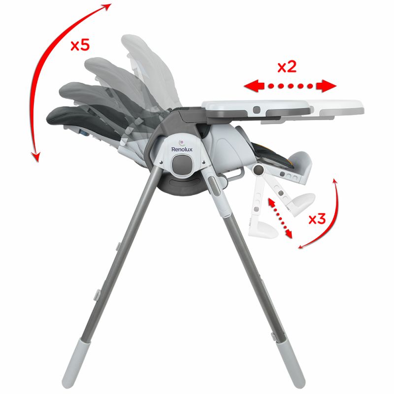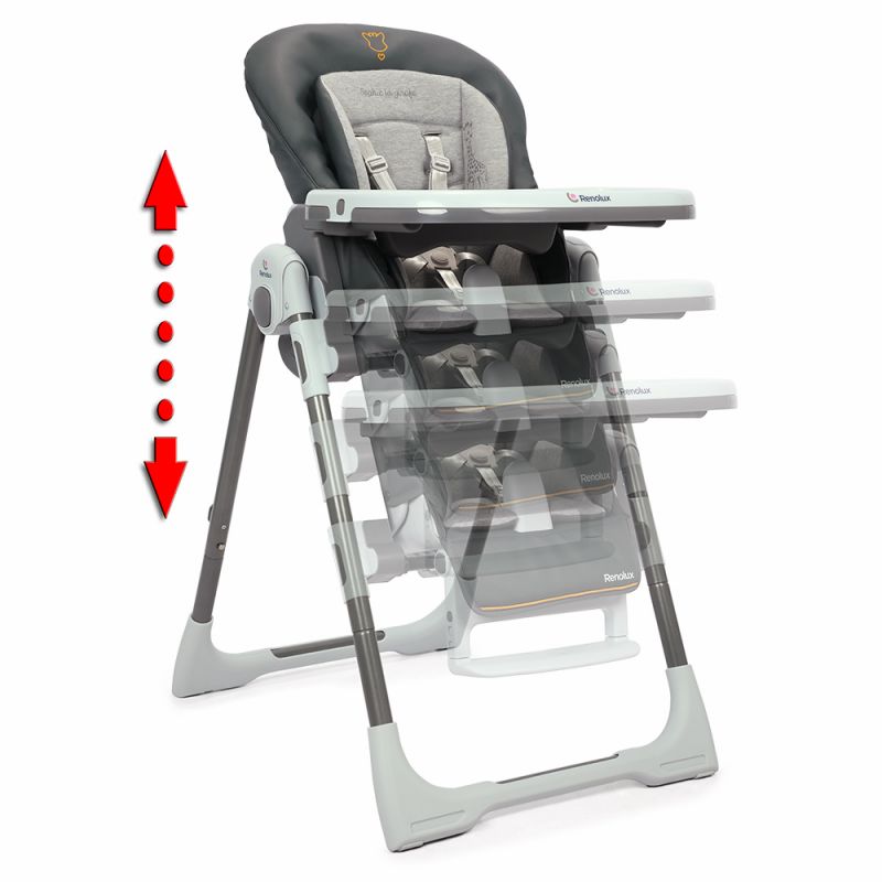 Sa hauteur est réglable sur 7 positions, et elle s'incline très simplement sur 5 positions grâce à son dossier articulé. Le confort d'accueil est assuré par une housse enveloppante et qualitative et par le réducteur bébé moelleux et réversible qui est amovible, tout comme la tablette et surtablette. Le pliage est compact.