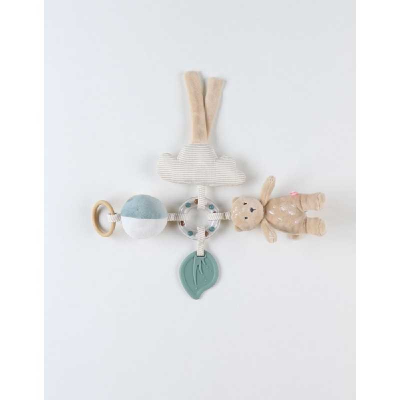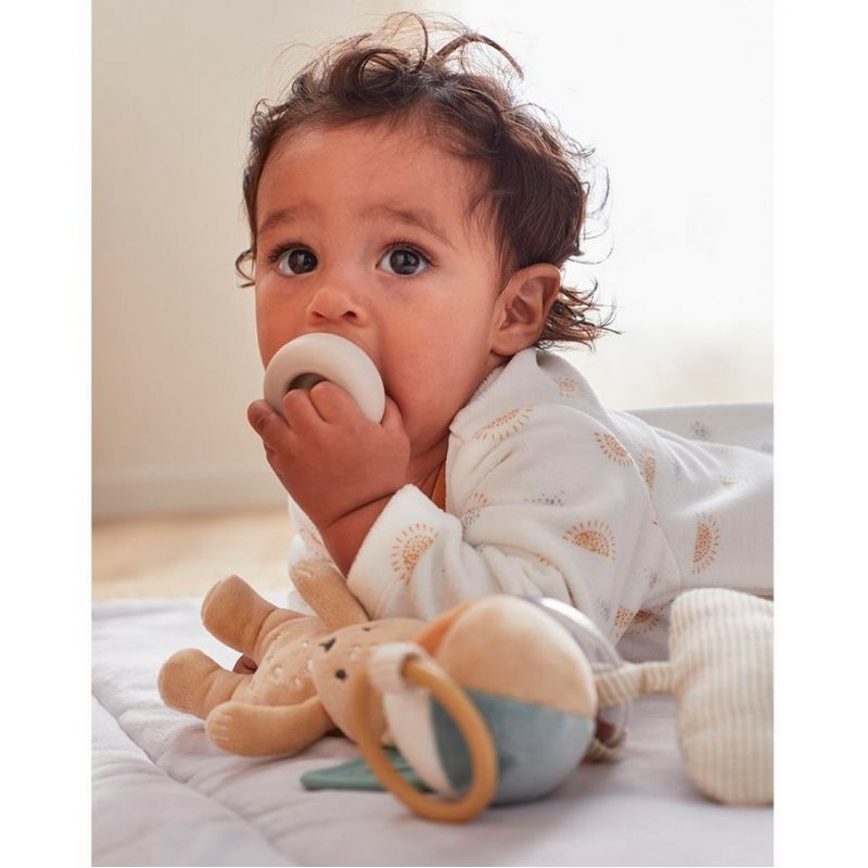• Vous y retrouverez : un anneau avec billes multicolores, un pouet Kendi, un nuage en papier froissé et un anneau de dentition en forme de feuille pour soulager les poussées dentaires.