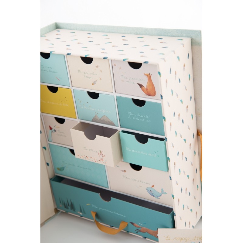 Découvrez les coffret à trésors MOULIN ROTY, pour ranger dans chacun des tiroirs toutes les douceurs de l'enfance. Mèche de cheveux, bracelet de la maternité, etc...