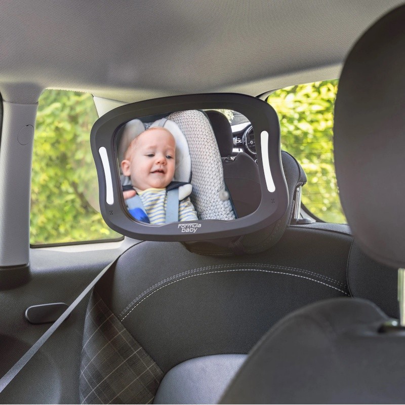 Avec ce rétroviseur XXL LED, il vous suffira de jeter un coup d’oeil dans votre rétroviseur de voiture pour surveiller Bébé lors de vos trajets, et ce, de jour comme de nuit ! En effet, deux LED sont situées de par t et d’autre du rétroviseur pour éclairer Bébé d’une lueur douce pour les trajets en fin d’après-midi hivernale sans le réveiller ! Le rétroviseur s’installe en un tour de main sur l’appui tête du siège arrière par des sangles qui assurent un maintien optimal du rétroviseur.