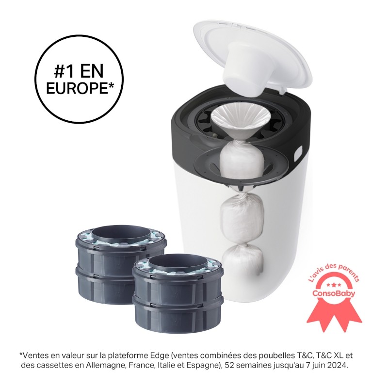 La poubelle à couches n°1 en Europe : Partout en Europe, les parents adorent nos poubelles à couches Twist & Click et leurs recharges, elles bloquent les odeurs et gardent votre maison propre et fraîche.
