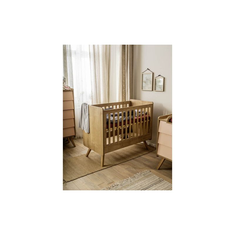 Ce lit bébé se démarque par ses pieds inclinés et par la chaleur du bois