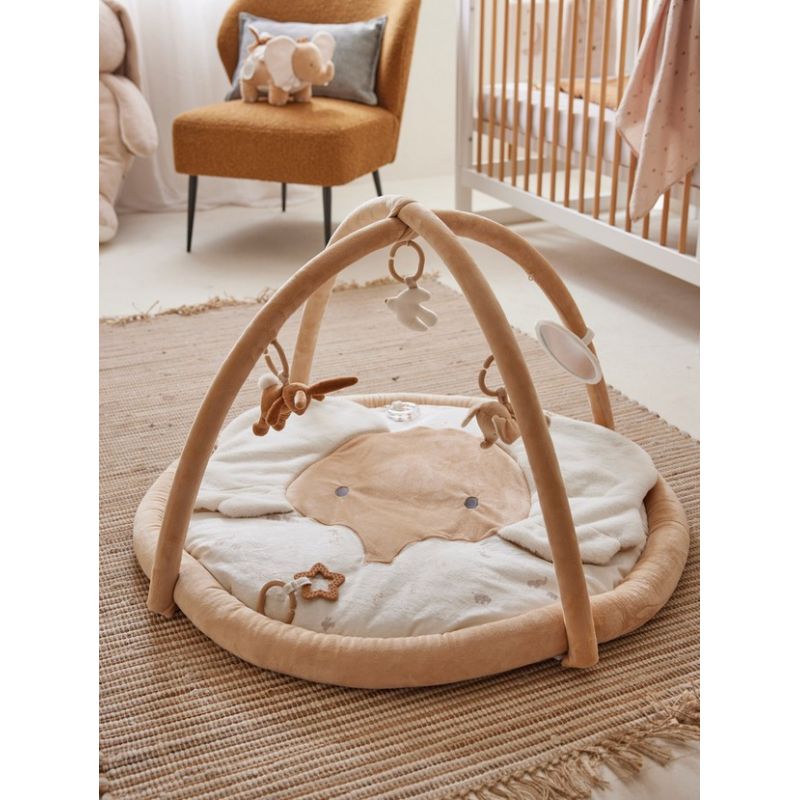 Le tapis d'éveil Snow, en veloudoux, constitue un espace idéal pour que votre bébé puisse jouer, explorer et se développer de manière ludique et sécurisée. Les couleurs douces et apaisantes ainsi que les textures moelleuses du veloudoux procurent une expérience sensorielle agréable pour votre bébé, stimulant ses sens et favorisant son développement cognitif.