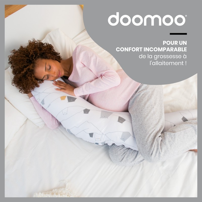 Le coussin d'allaitement doomoo est multi-usages et évolutif. Durant la grossesse, il permet de soulager votre dos, vos jambes ou votre ventre. Confortablement installée avec le coussin, vous vous reposez la journée dans votre canapé et retrouvez un sommeil réparateur la nuit. Le coussin doomoo s'adapte à toutes les positions grâce à sa forme allongée, à son remplissage en microbilles ultra fines et à son coton organique extensible.
